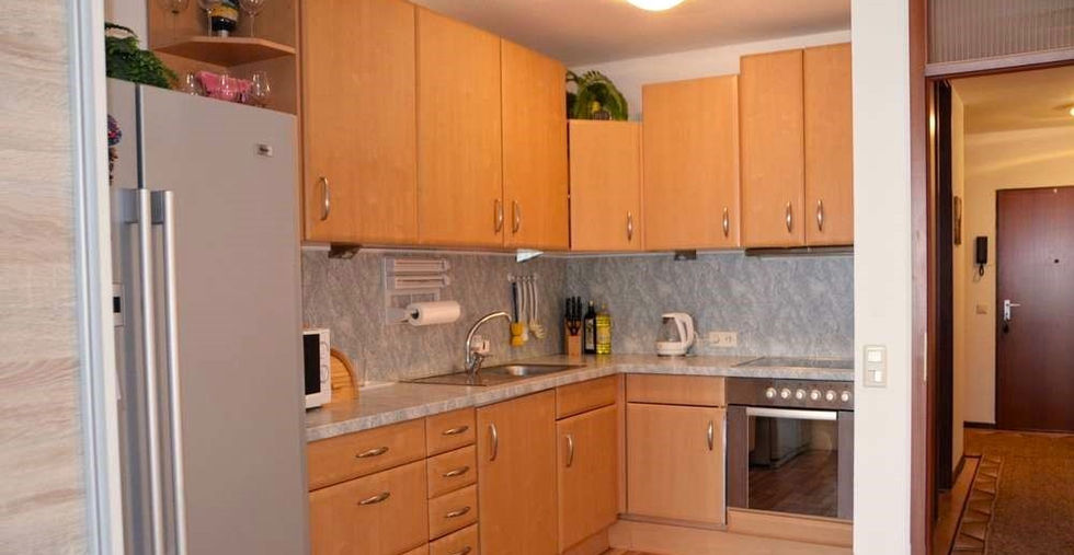 Durch eine Zwischentür gelangt man in den Koch- und Essbereich, der in den Wohn- und Schlafbereich übergeht. Die u-förmig angelegte Küche ist nicht Bestandteil des Angebotes, diese ist Eigentum der Mieterin.